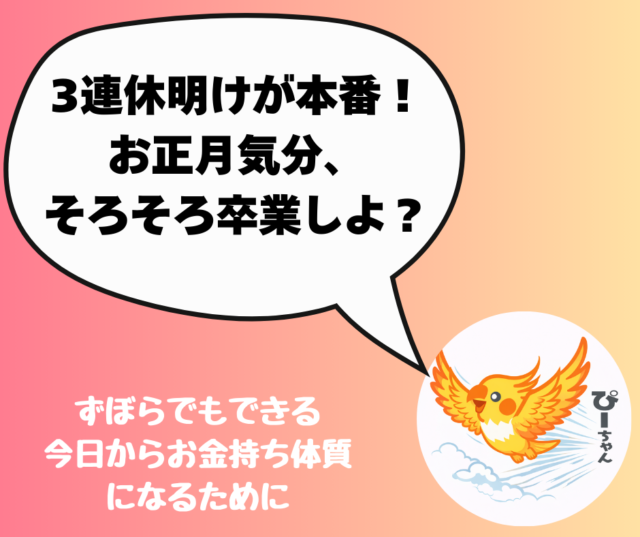 3連休明けがチャンス!お正月気分を脱いで、心もお財布も本格始動しよ♪